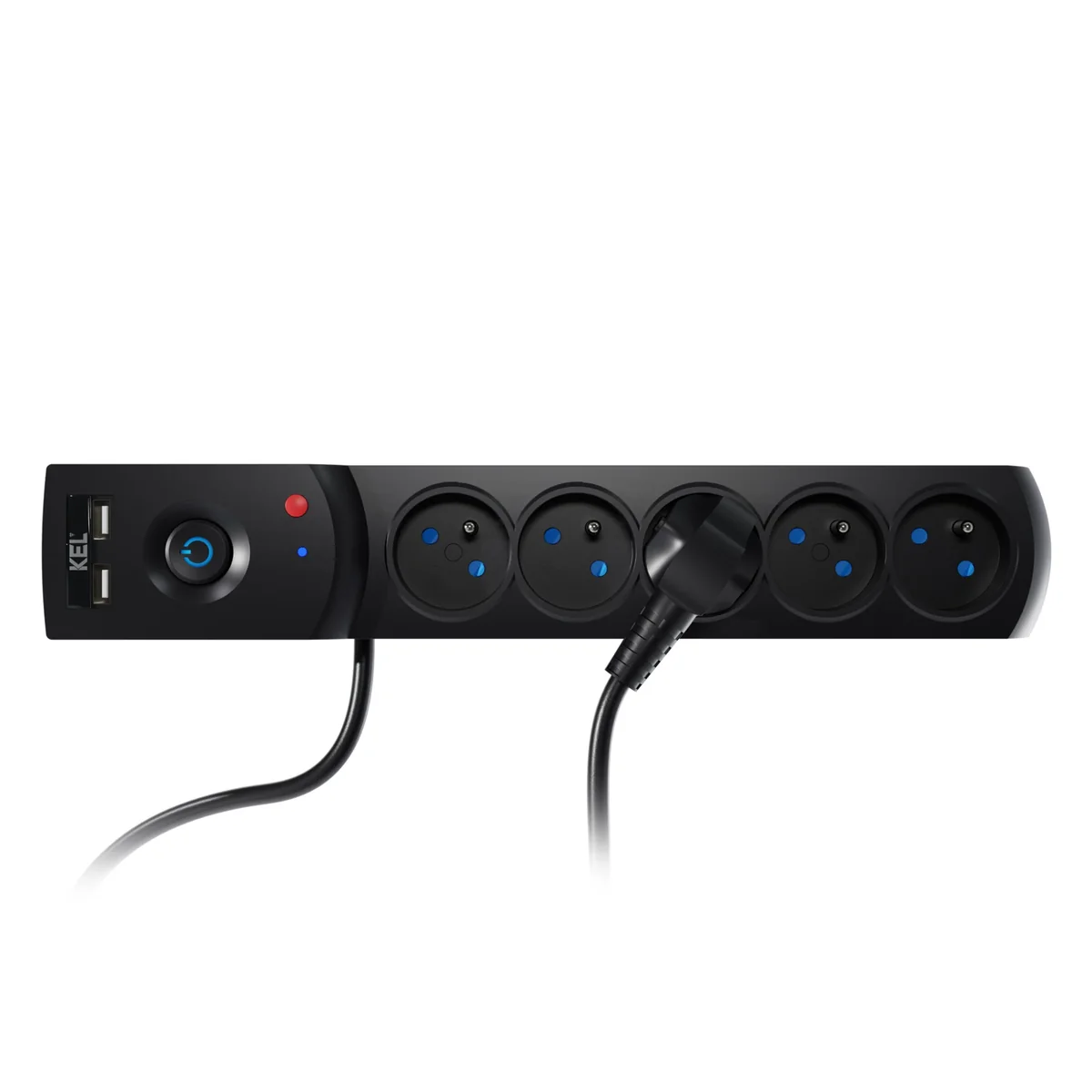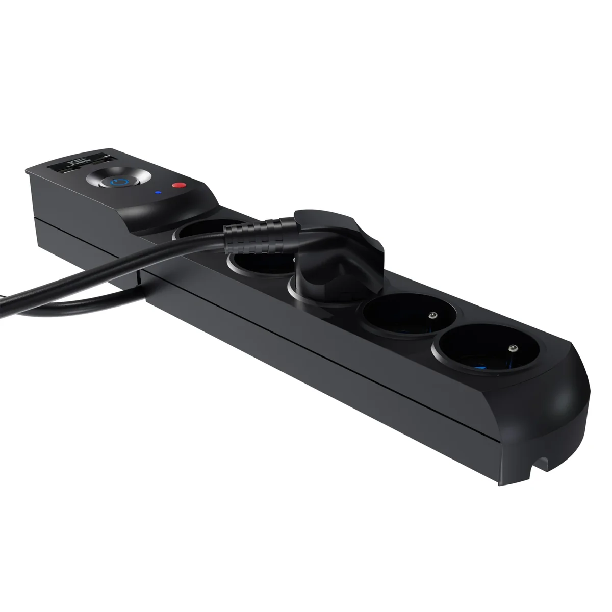 Multiprise avec fusible et système parasurtenseur professionnel 5 prises 2 ports USB longueur 5m 10A 230V 2300W noir W-100045