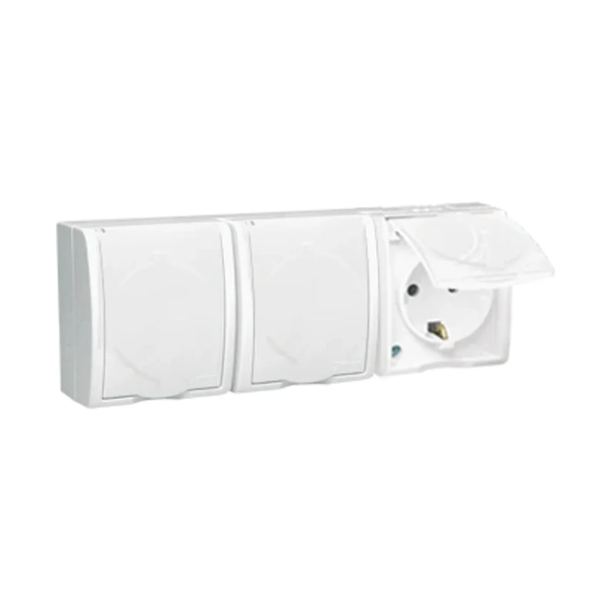 Simon Aquarius est une lignée de équipement d'installation électrique étanche aux éclaboussures, pour une utilisation dans des pièces exposées à l'humidité. La prise électrique hermétique caractérise les caractéristiques de cette série unique.