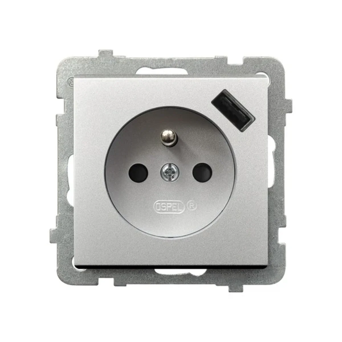 Prise électrique de la série Sonata, du fabricant Ospel. Le numéro de catalogue du produit est GP-1RZPUSB/M/38.