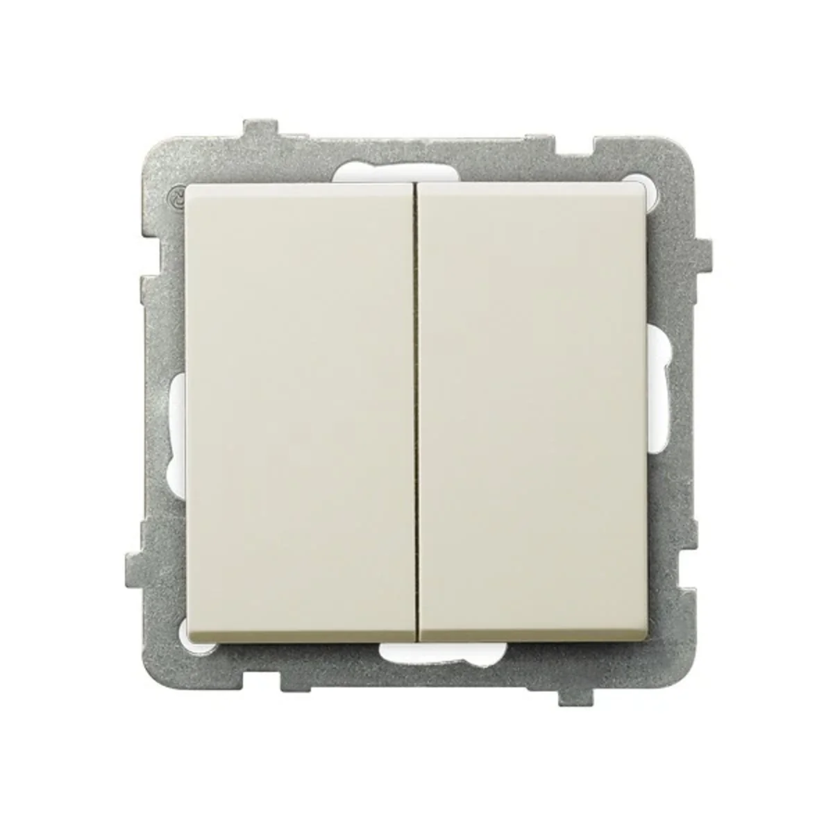 Double interrupteur de la série Sonata, de Ospel. Le numéro de catalogue du produit est ŁP -17R/m/27. Couleur écru.
