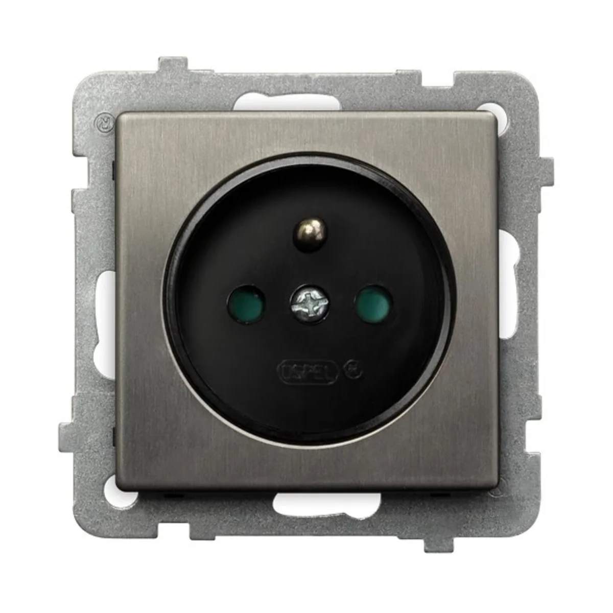 Prise électrique de la série Sonata Steel Inox, de Ospel. Le numéro de catalogue du produit est GP-1RMZP/M/37.