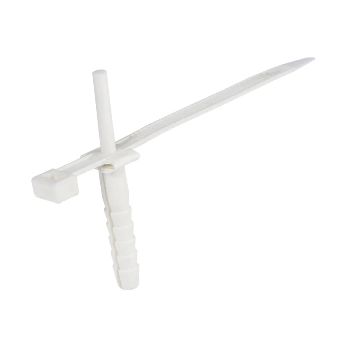 Serre-câble avec goupille de montage rapide. La bande en polypropylène comprend également une goupille d'expansion. Ce support est généralement utilisé pour maintenir des fils individuels, des faisceaux de fils ou des tubes en plastique.