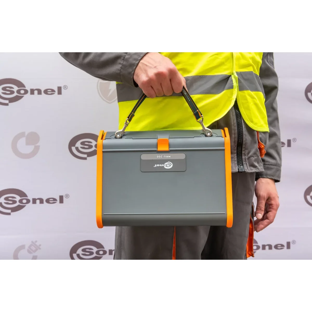 Le harnais est parfaitement adapté aux compteurs Sonel, fini avec des mousquetons. Gris foncé avec éléments orange.