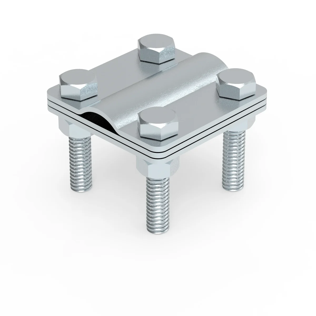 Il est utilisé pour connecter la tige de mise à la terre au ruban. Le connecteur est composé de 3 parties de 2 mm d'épaisseur vissées entre elles par 4 vis M8.