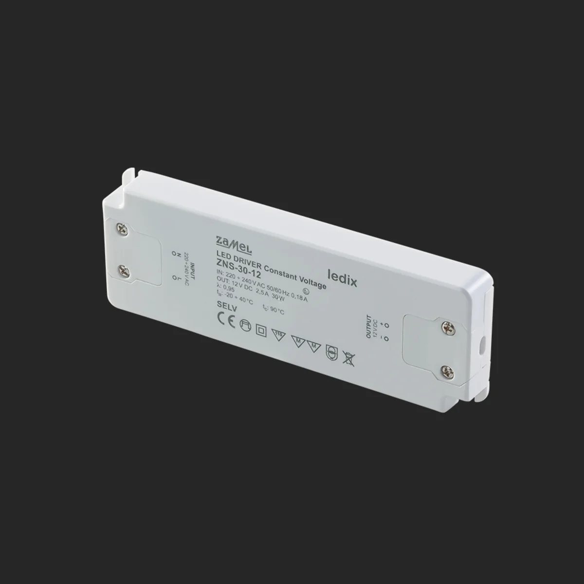 L'alimentation à découpage ZNS-30-12 est destinée à être utilisée dans les installations d'éclairage LED domestiques. La conception modulaire permet un assemblage facile et pratique sur des surfaces horizontales et verticales à l'intérieur. L'alimentation a une tension de sortie de 12 V DC et une puissance de sortie de 30 W. Des protections intégrées garantissent un fonctionnement ininterrompu et ininterrompu de tous les éléments LED connectés.