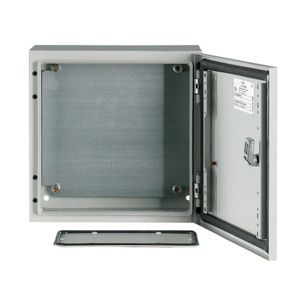 Carters universels CS. Les enveloppes sont équipées de : plaque de montage, serrure, porte, plaque d'obturation complète.Il est possible de commander un appareillage dans une couleur et des dimensions différentes (sur demande).