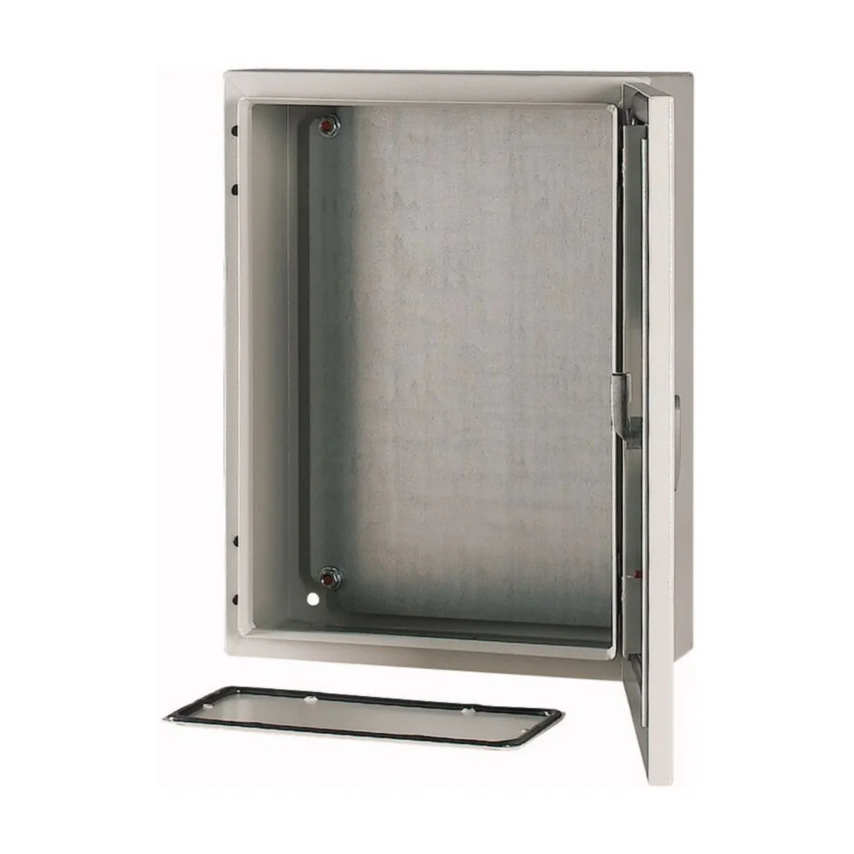 Carters universels CS. Les enveloppes sont équipées de : plaque de montage, serrure, porte, plaque d'obturation complète.Il est possible de commander un appareillage dans une couleur et des dimensions différentes (sur demande).
