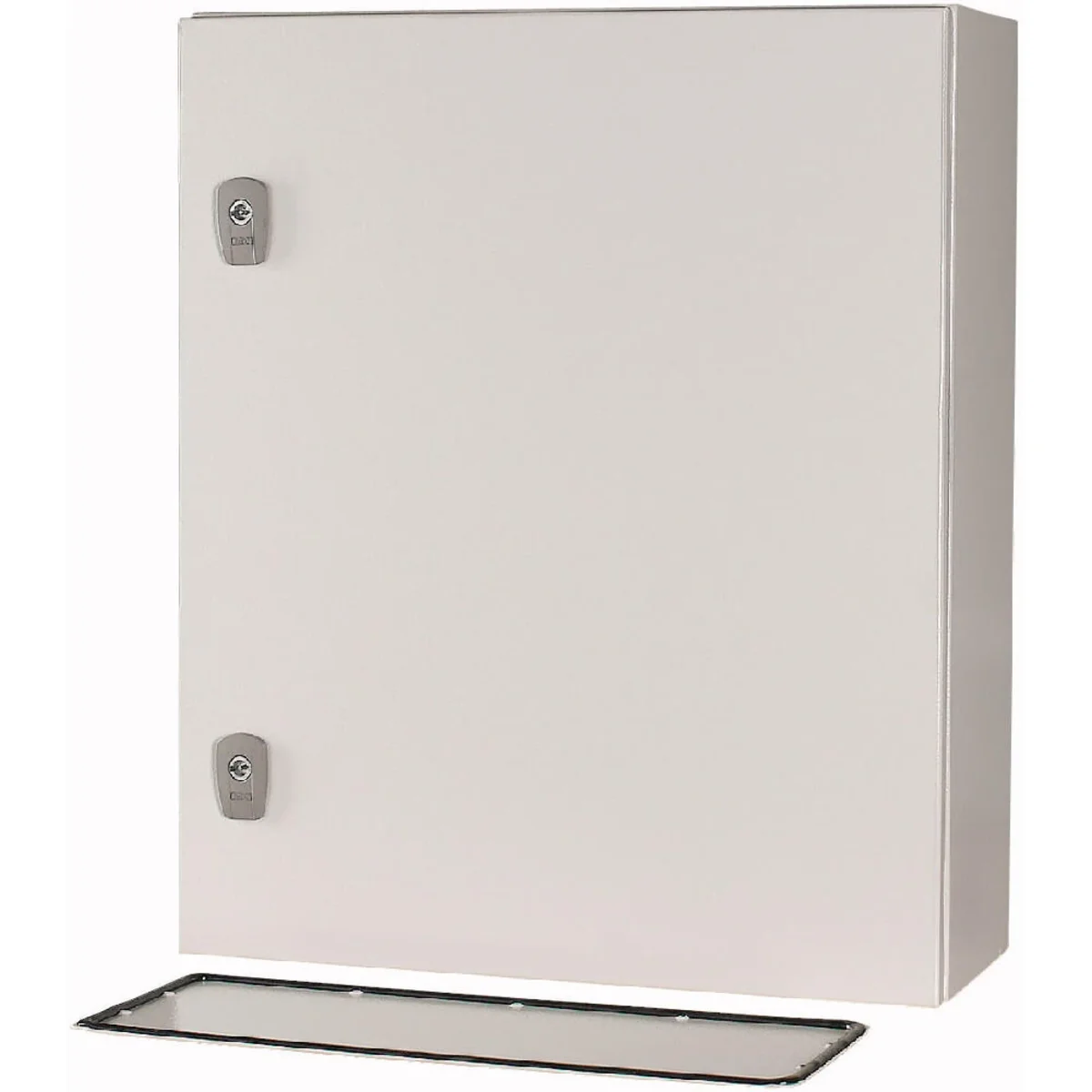 Carters universels CS. Les enveloppes sont équipées de : plaque de montage, serrure, porte, plaque d'obturation complète.Il est possible de commander un appareillage de couleur et de dimensions différentes (sur demande).