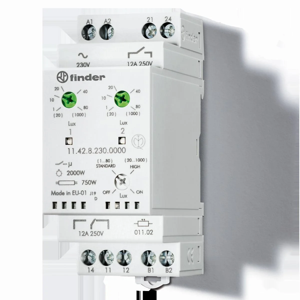 Relè per il controllo automatico dell'illuminazione in base al livello di intensità della luce esterna — con un sensore di intensità della luce separato.