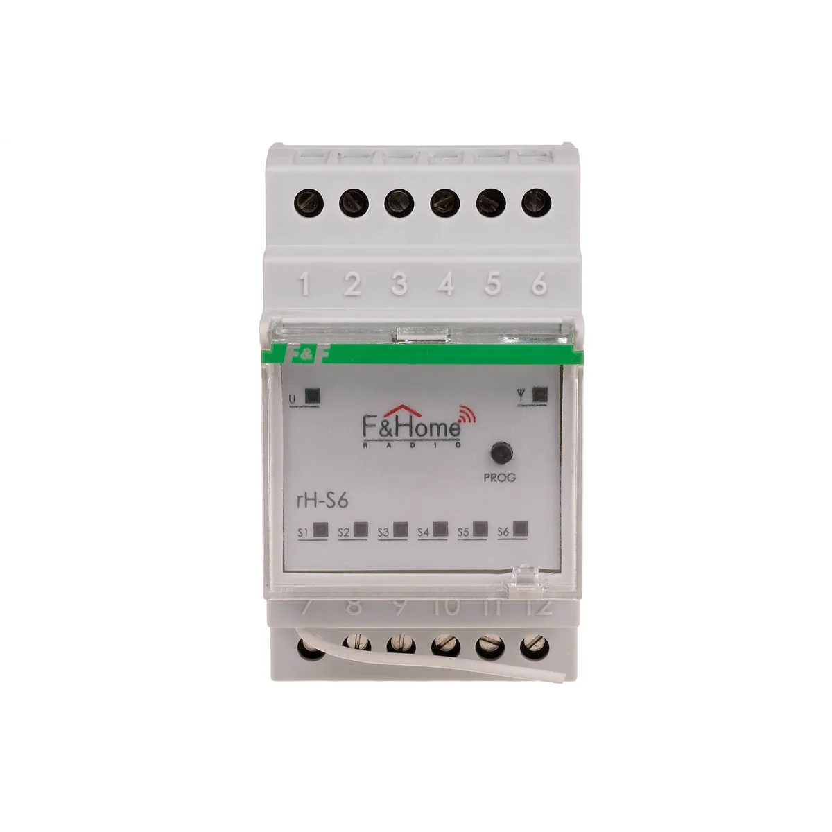 rH-S6 dispone di ingressi per il collegamento di sei contatti monostabili privi di potenziale. Il modulo invia al sistema l'informazione relativa al cortocircuito o all'apertura dei contatti. La comunicazione con il server avviene via radio.