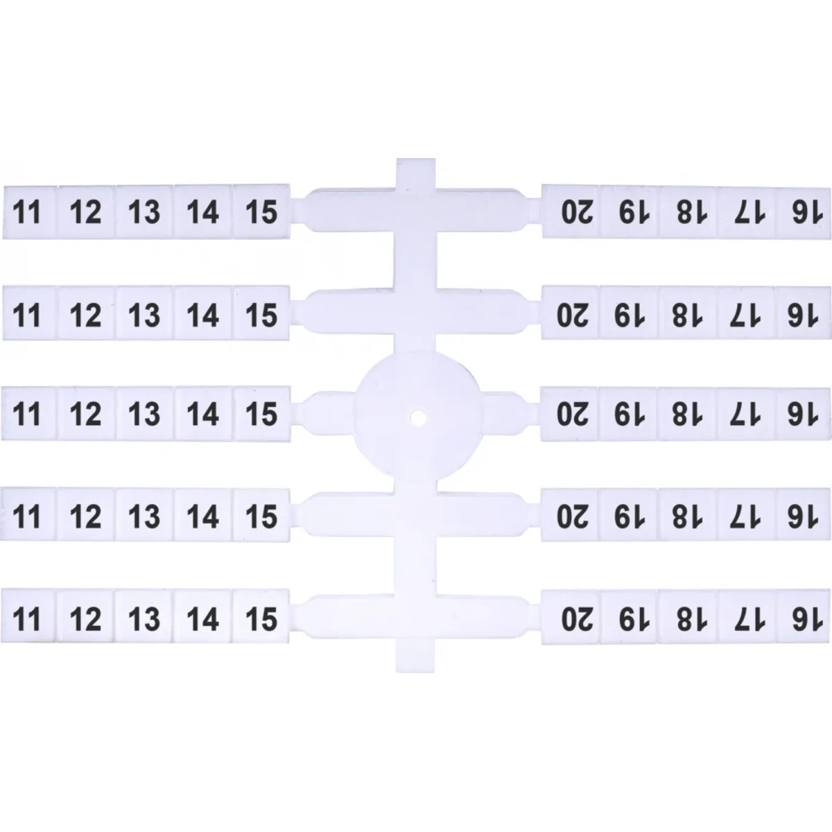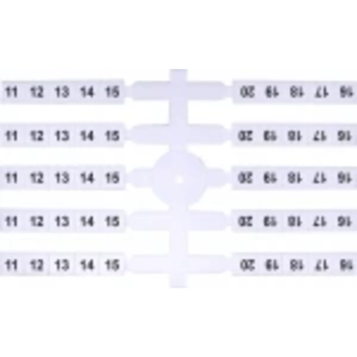 Per la siglatura di connettori filettati VS...PA e supporti PK PA. Sono realizzati con e senza stampa in due formati: EO3 (4,8 x 5 mm) ed EO4 (4,8 x 11 mm). I contrassegni nelle confezioni sono collegati tra loro e devono essere strappati durante l'installazione sui connettori.