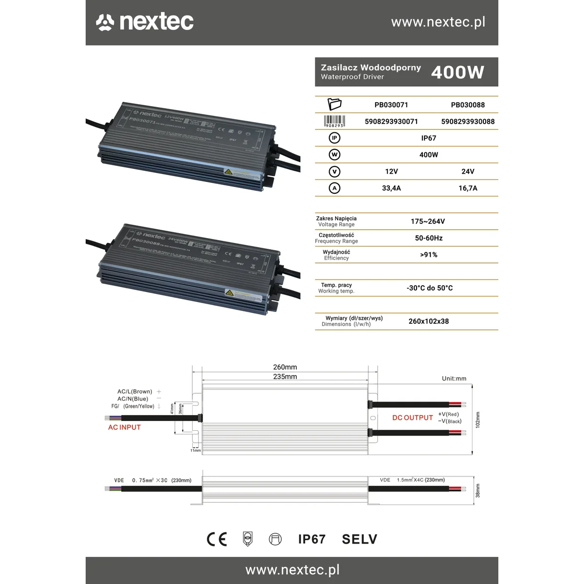 Alimentatore LED slim impermeabile 12V 33,3A 400W IP67 PB030071