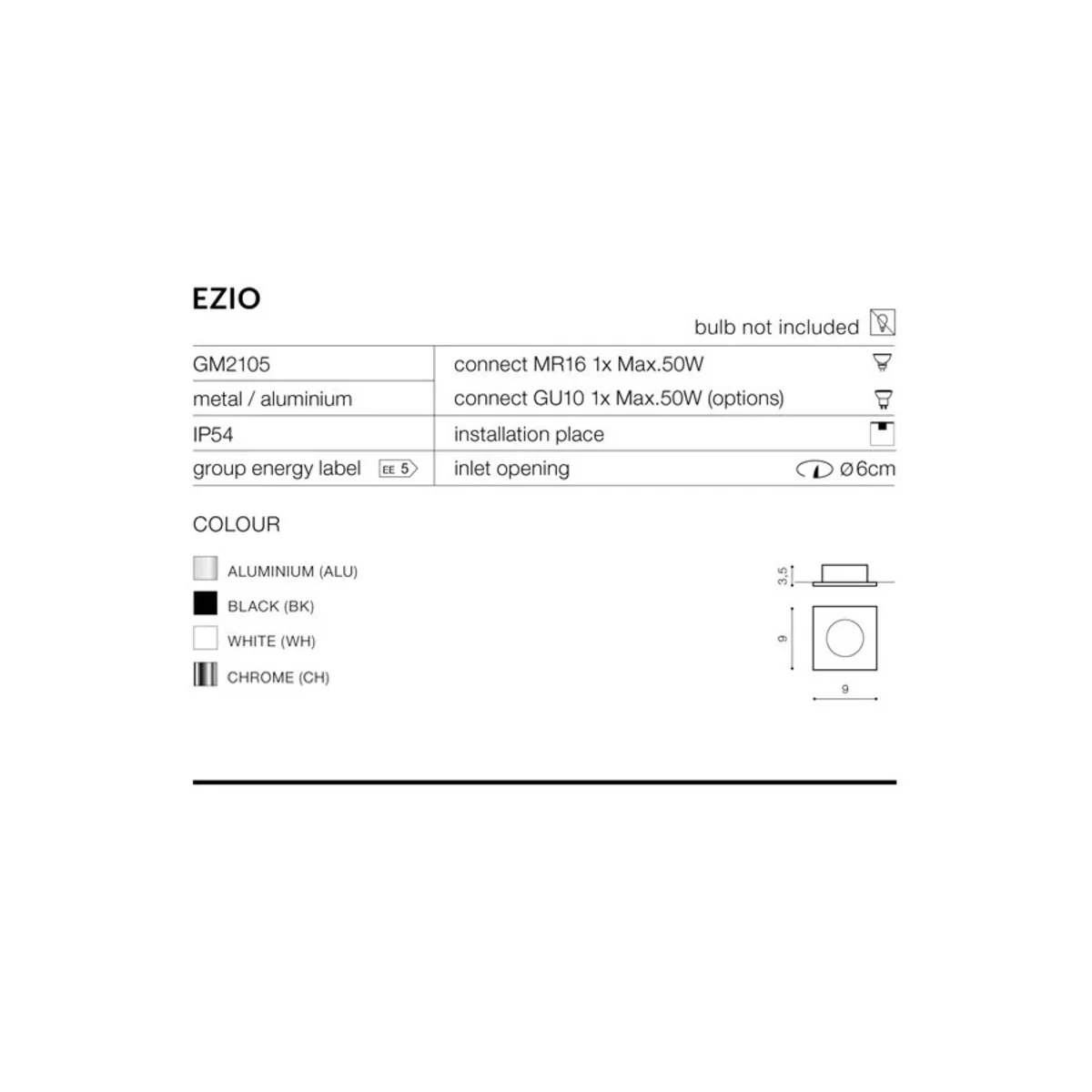 EZIO Lampada da soffitto ad incasso, cromo AZ1051