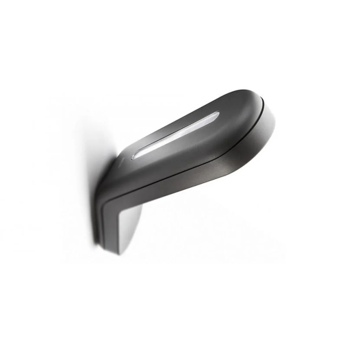 Questa lampada da parete per esterni in fusione di alluminio antracite emette un cerchio di luce bianca calda diretta verso il basso. È ideale per illuminare un giardino, un vialetto o un terrazzo, e la sua forma snella e discreta non disturberà sicuramente la disposizione dello spazio esterno.