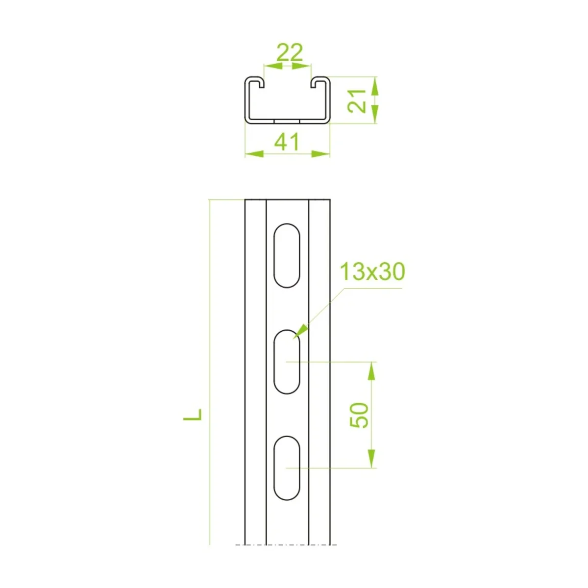 Canale di montaggio zincato, lunghezza 6 m, larghezza 41 mm, altezza 21 mm 643160