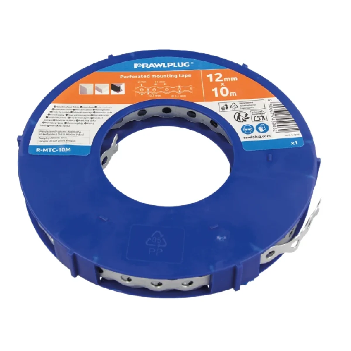 Nastro facile da tagliare, piegare o attorcigliare con un'ampia gamma di applicazioni per elettricisti, idraulici, installatori HVAC e installatori di tubi. Facile da installare grazie ai fori uniformemente distanziati. Fornito in un rotolo da 10 metri e può essere adattato alla lunghezza richiesta. Montaggio versatile in acciaio zincato.
