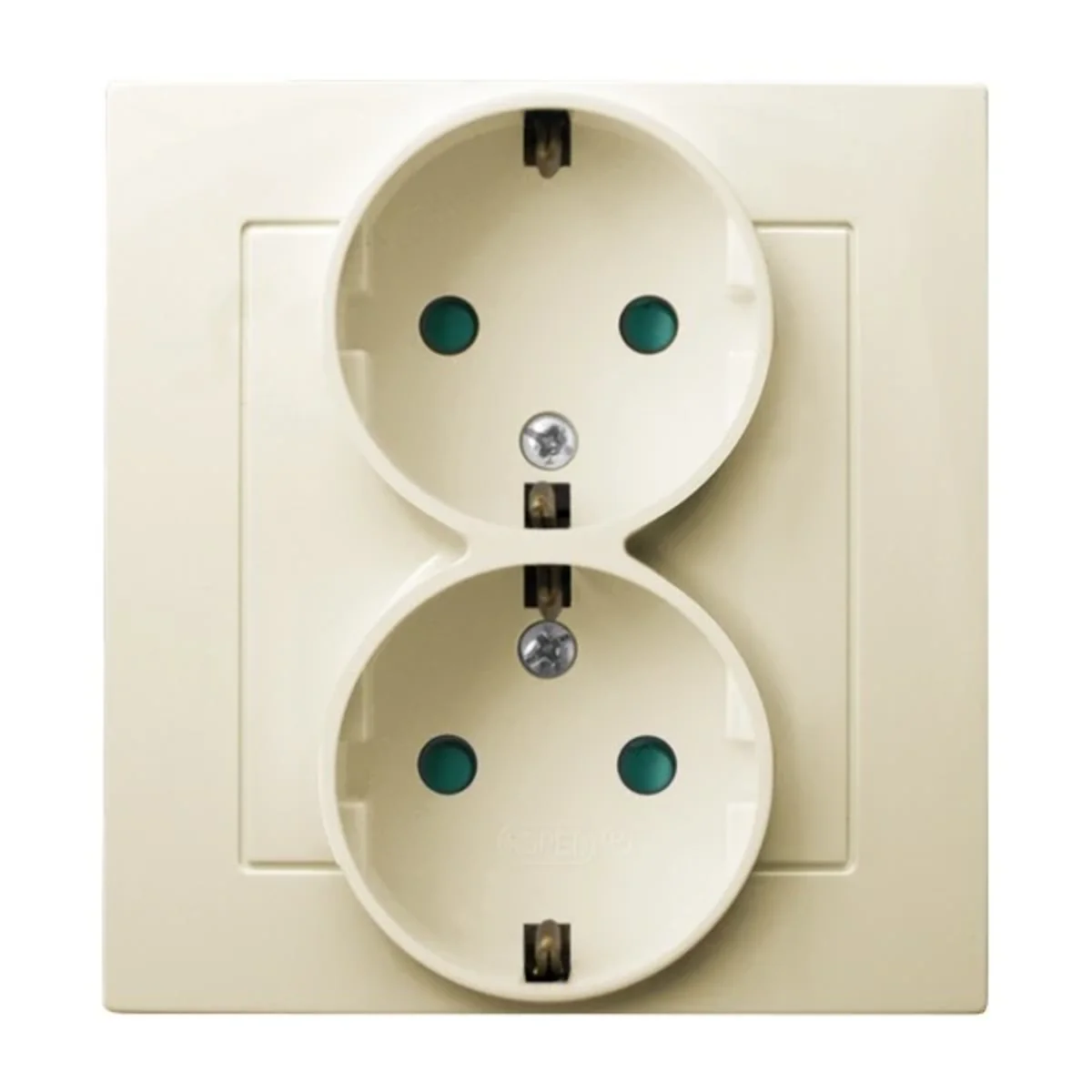Doppia presa elettrica, con messa a terra schuko, con serrande sul percorso della corrente.