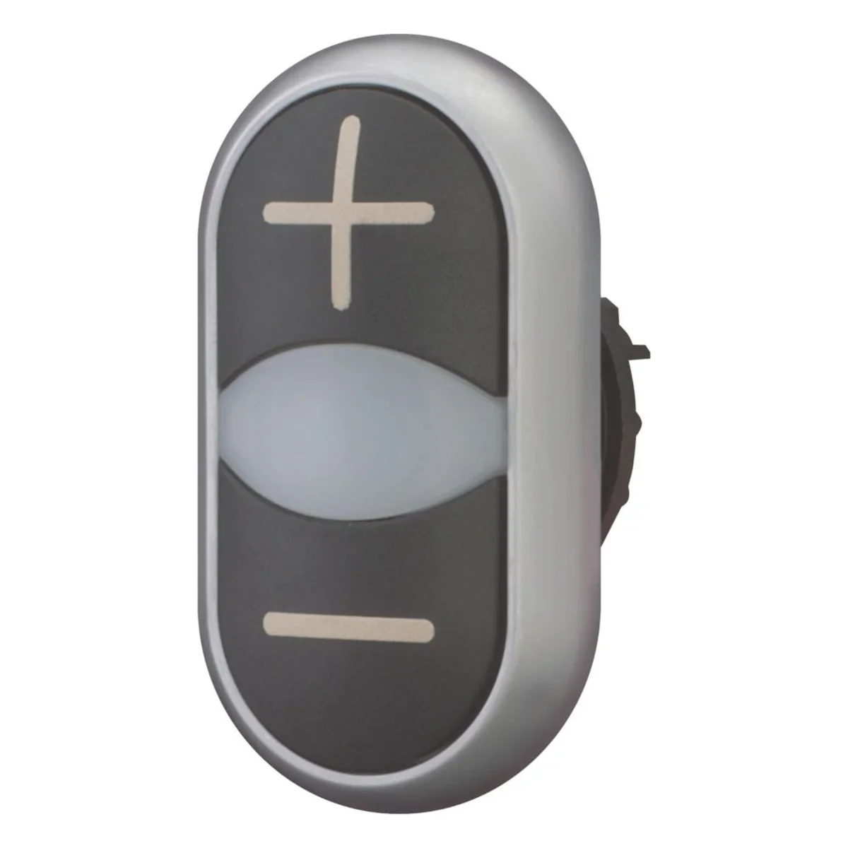 Azionamento a doppio pulsante con ritorno a molla, nero con descrizione +, -