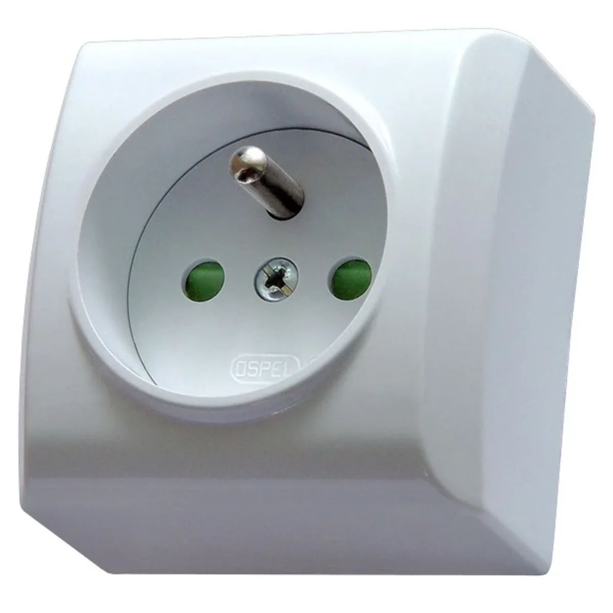 Presa elettrica da parete della serie Bis del produttore Ospel. Il numero di catalogo del prodotto è GN-1BZP/00.