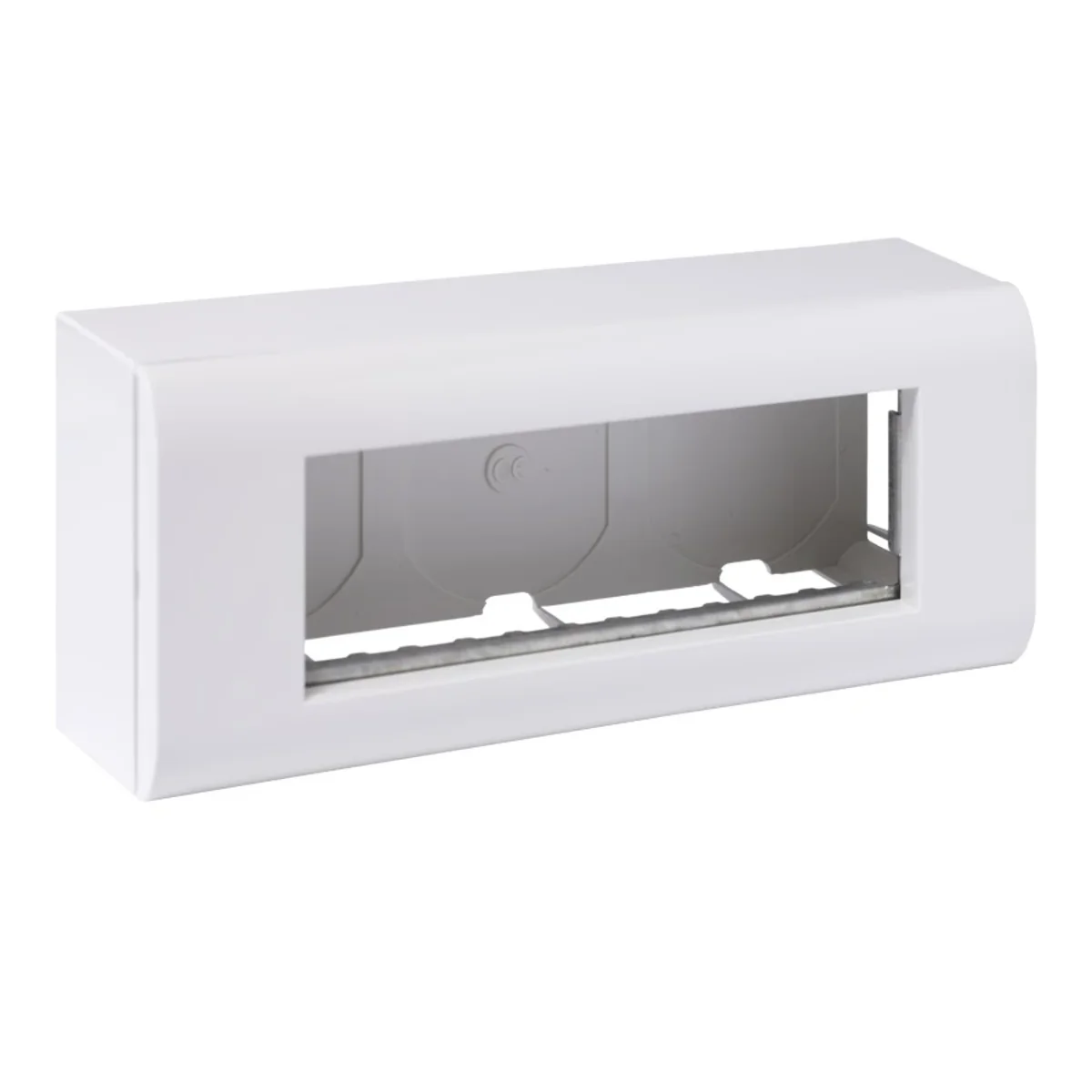 Le custodie da parete sono destinate al montaggio di apparecchiature elettriche e di telecomunicazione nello standard mosaico 45x45. Le prese standard da 60mm possono essere installate solo in una custodia da 2 moduli (OBUK-2/M), previa sostituzione delle viti con viti a testa piatta, ma bisogna fare attenzione ad abbinare la cornice degli accessori alla custodia da parete. Il set comprende: alloggiamento per montaggio su superficie (OBU), staffa di montaggio (SUP), cornice di mascheratura (RAM). Permette di creare un punto elettrico e logico (PEL).