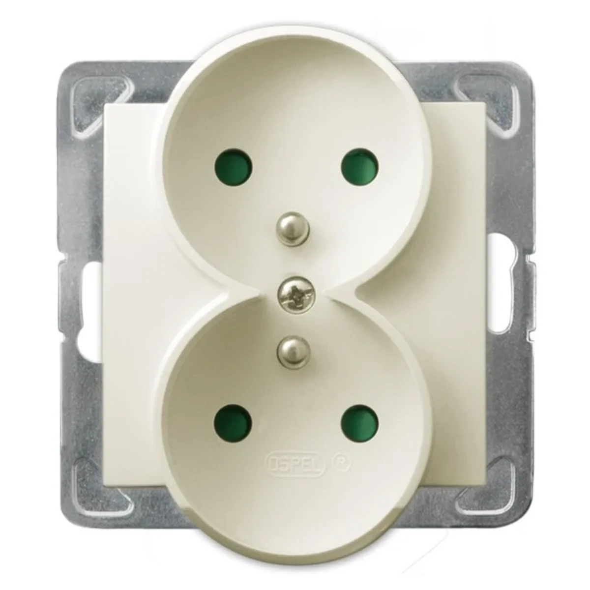 Presa elettrica doppia, con messa a terra, con serrande percorso corrente.