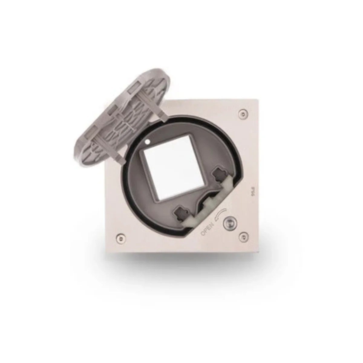 Copriscatola con serratura di sicurezza con chiave a brugola, vuoto, per un modulo K45, per basi di scatole per pavimenti tecnici e scatole per massetti - per sistemi di distribuzione Simon Connect.