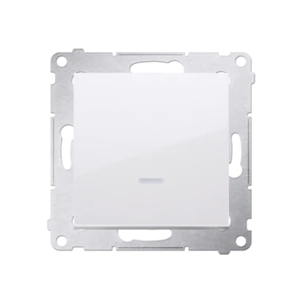 Interruttore unipolare (bistabile) della serie Simon 54.Con retroilluminazione a LED orientabile e sostituibile, blu. Per ottenere la classe di protezione dagli schizzi IP44 utilizzare una guarnizione per cornice.
