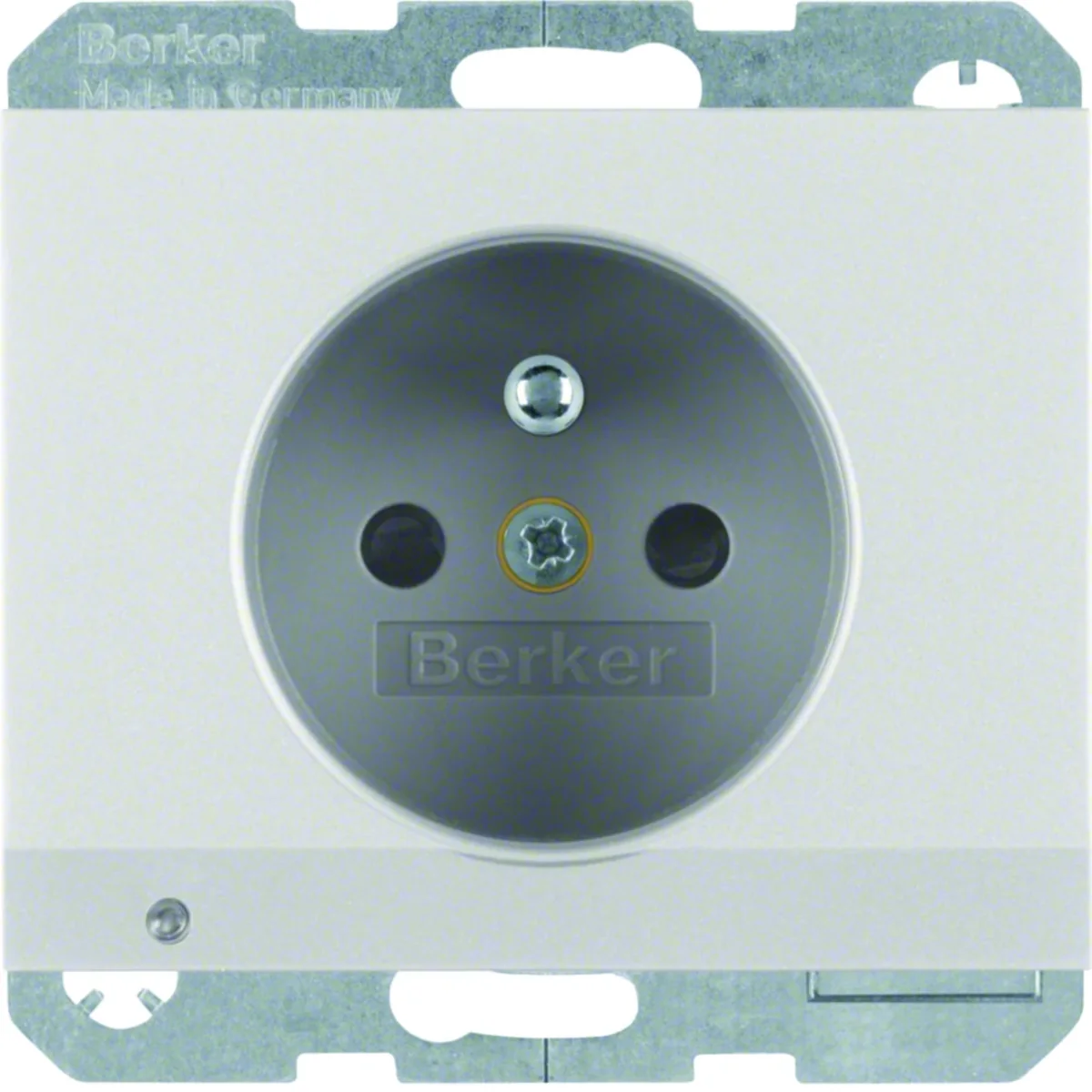 Presa con messa a terrae retroilluminazione a LED di orientamento,della serie BerkerK.5, ovvero semplice chiusa moduli in metallo di alta qualità, che funzioneranno bene negli interni moderni.