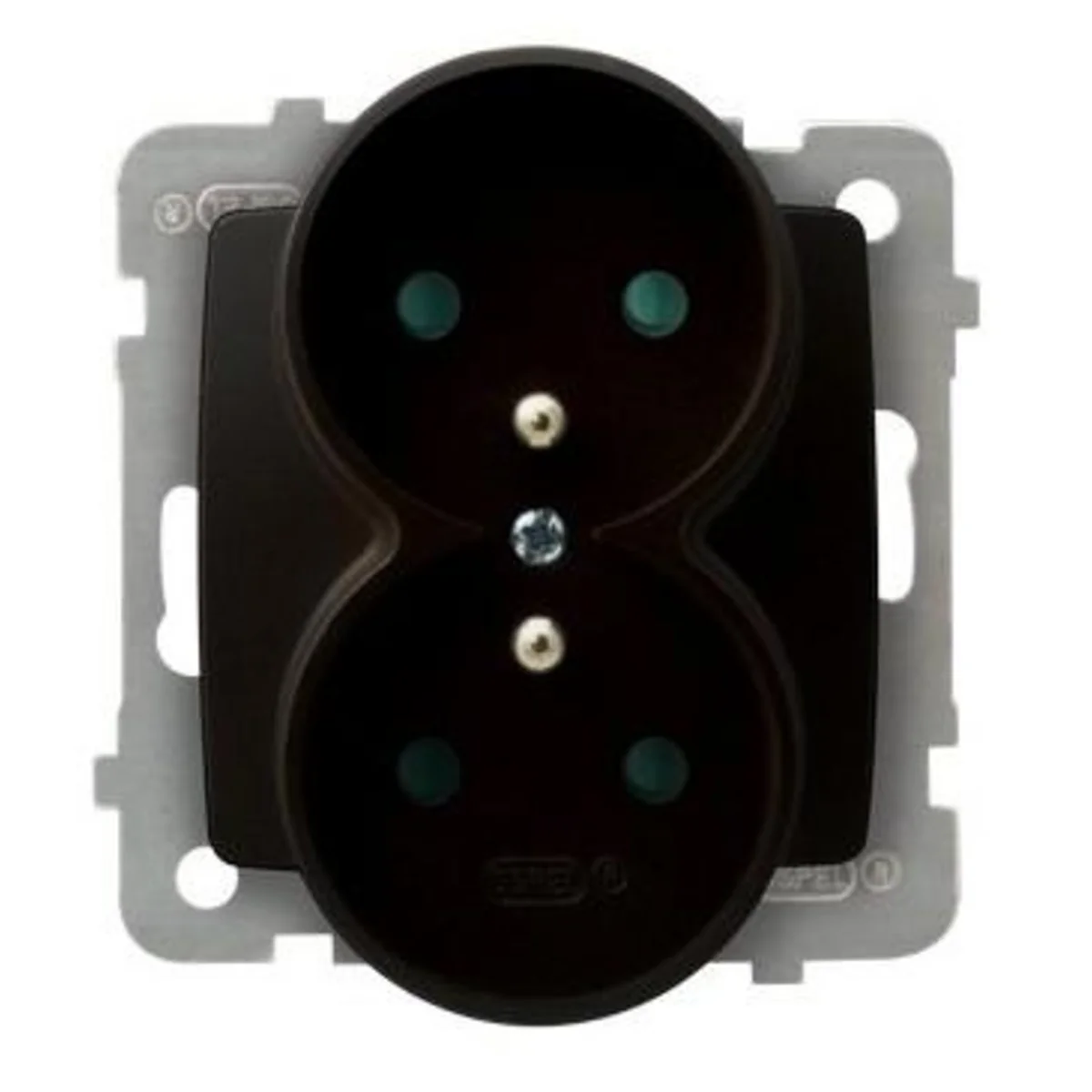Doppia presa elettrica, con messa a terra, con otturatori del percorso corrente.