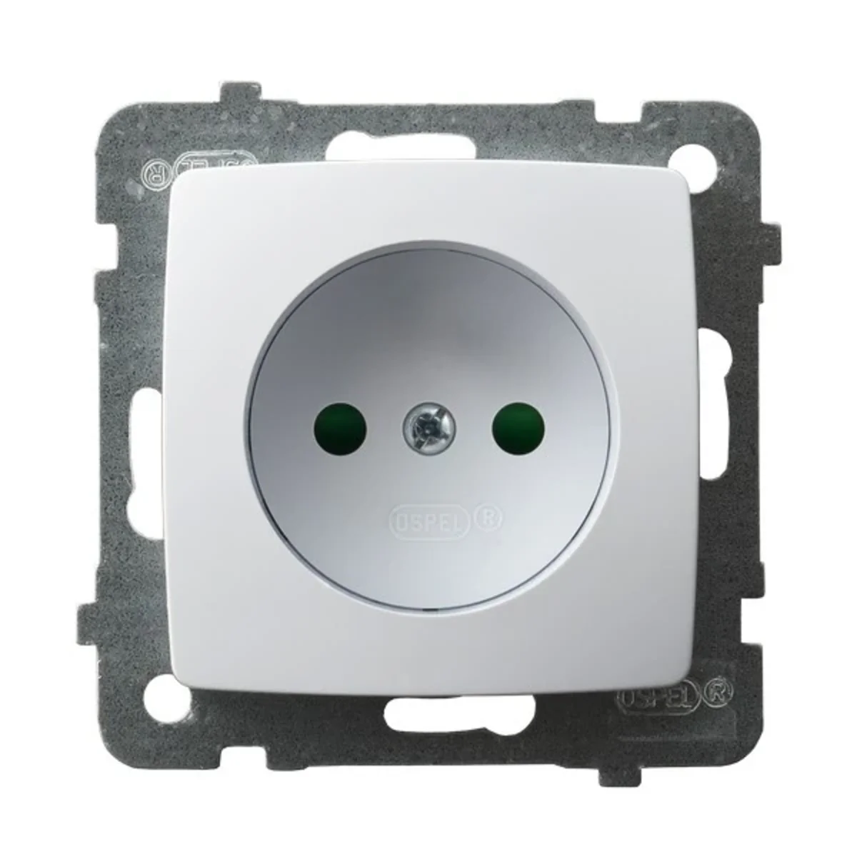 Presa elettrica della serie Karo, del produttore Ospel. Il numero di catalogo del prodotto è GP-1SP/M/00.