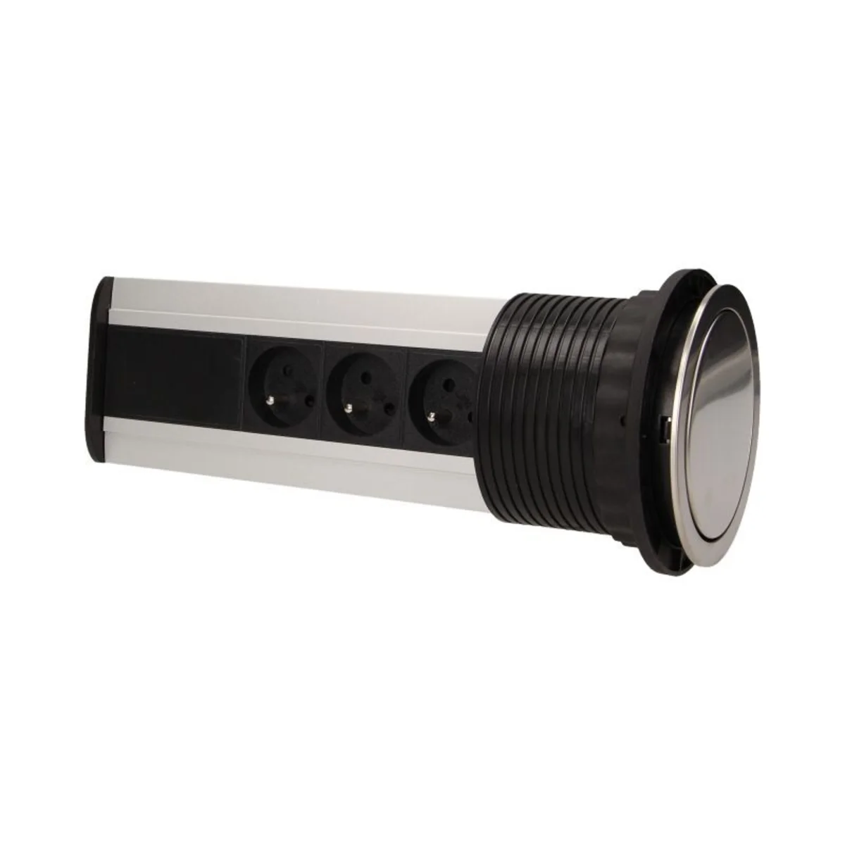Presa da mobile 3x2P+Z, 2xUSB, allungabile dal piano tavolo 10cm, con serratura e cavo 1,8m, INOX OR-AE-1354