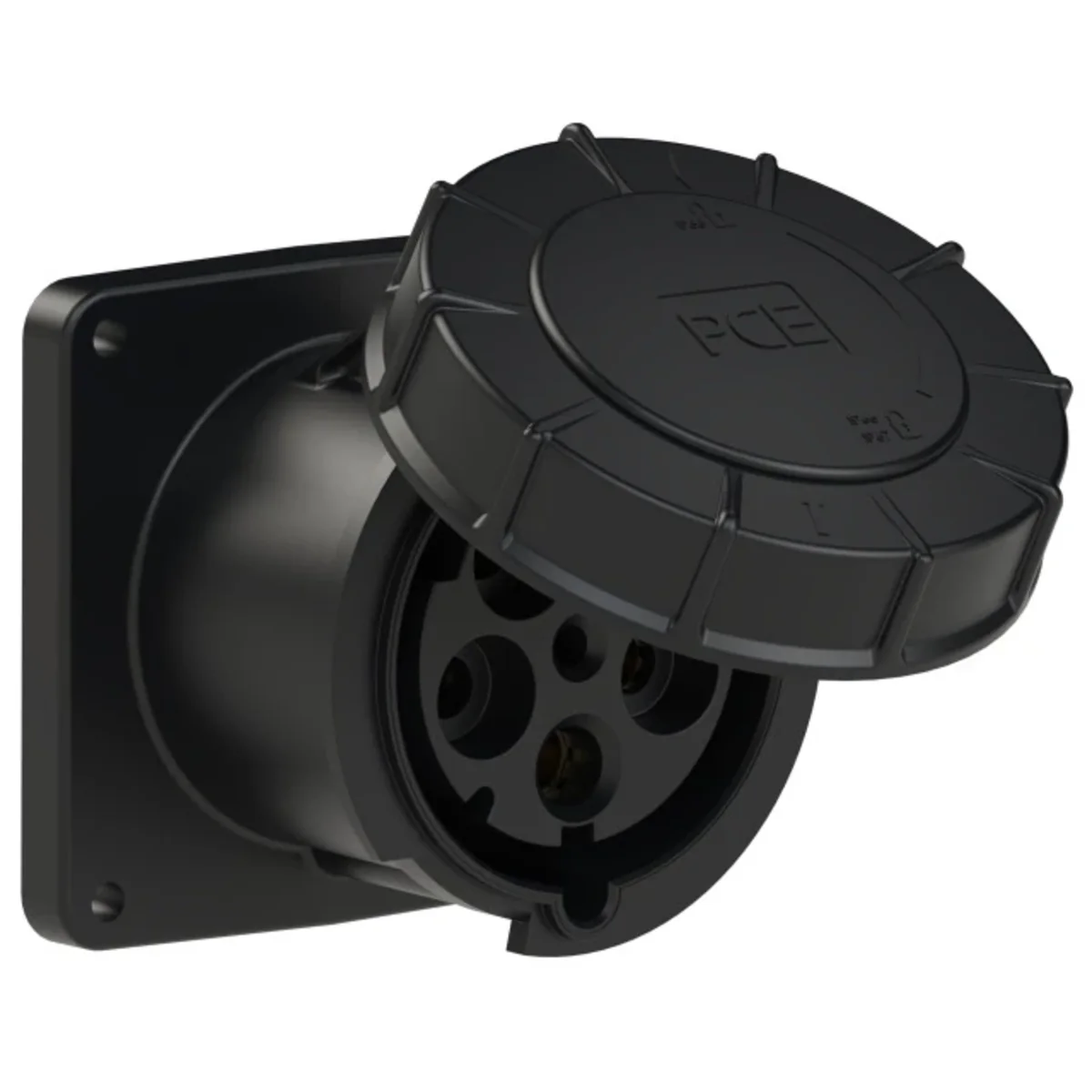 Presa da pannello diritta POWER TWIST 125A 3P+Z+N 400V 50/60Hz 6h IP66/67, flangia 120X120, interasse viti 100X100, serie MIDNIGHT 345-6XS