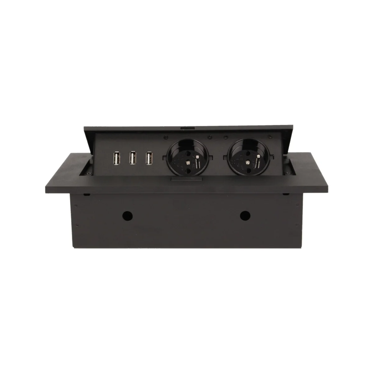 Presa incassata nel piano tavolo 3xUSB, 2x230VAC, nera OR-AE-1324/B
