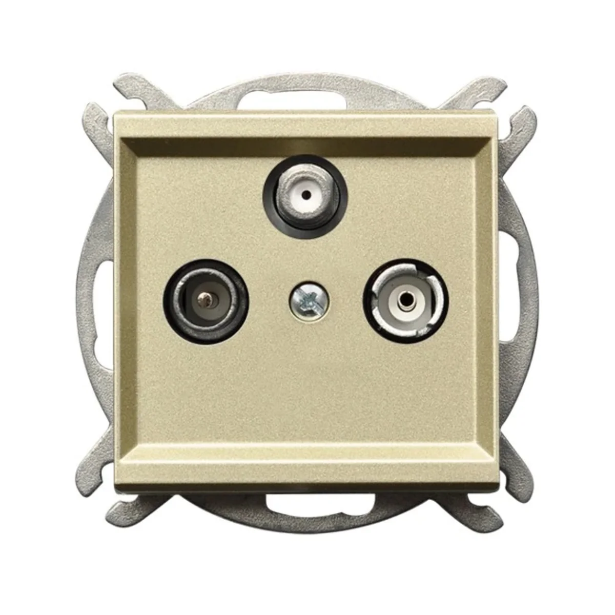 Presa antenna RTV-SAT passante. È destinato all'installazione in serie, in cui un cavo passa attraverso diversi ricevitori. Da corredare con cornice.