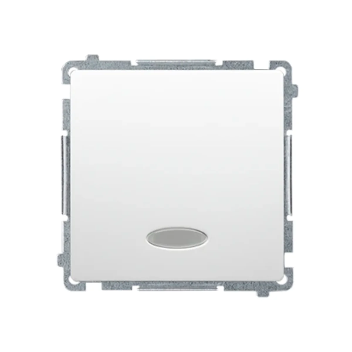 Pulsante singolo con retroilluminazione, della serie Simon Basic, del produttore Contatta Simon. Il numero di catalogo del prodotto è BMP1L.01/ 11. In bianco.