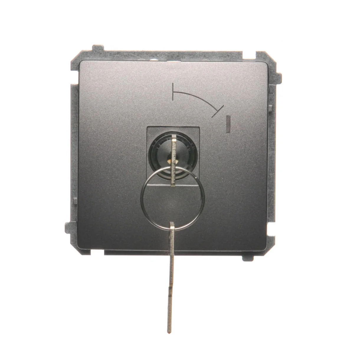 Interruttore a chiave momentaneo (pulsante) della serie Simon Basic, del produttoreContatta Simon. Il numero di catalogo del prodotto è BMP1K.01/21. Colore inox, metallizzato.