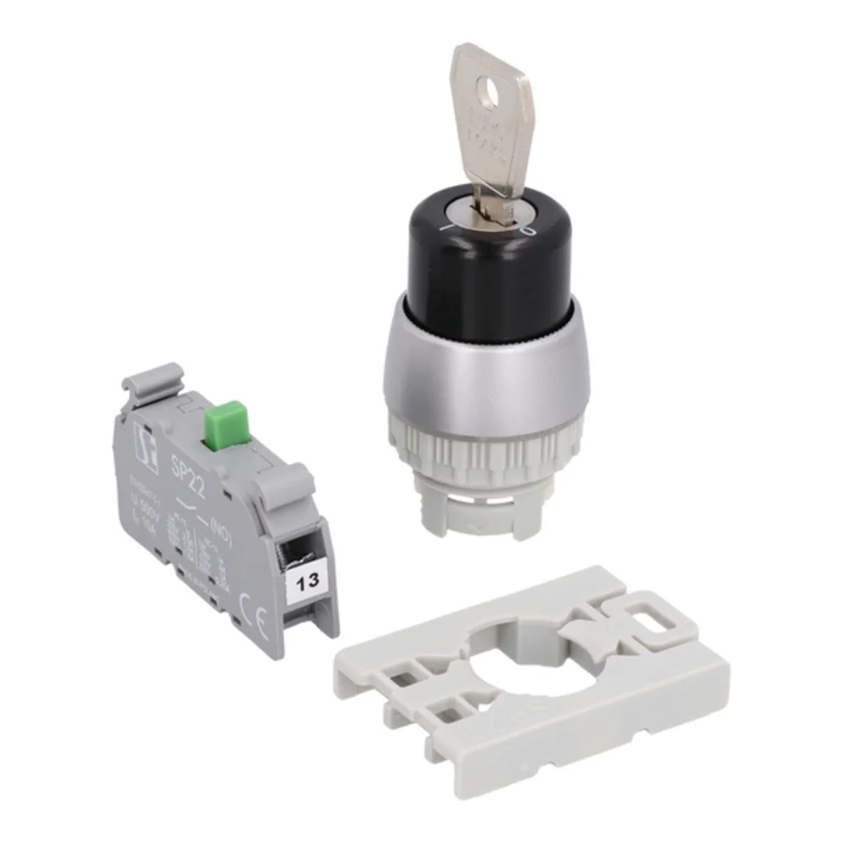 Selettore rotativo a due posizioni con chiave, 1 contatto in chiusura, ghiera nichelata SP22-SAA-10\.