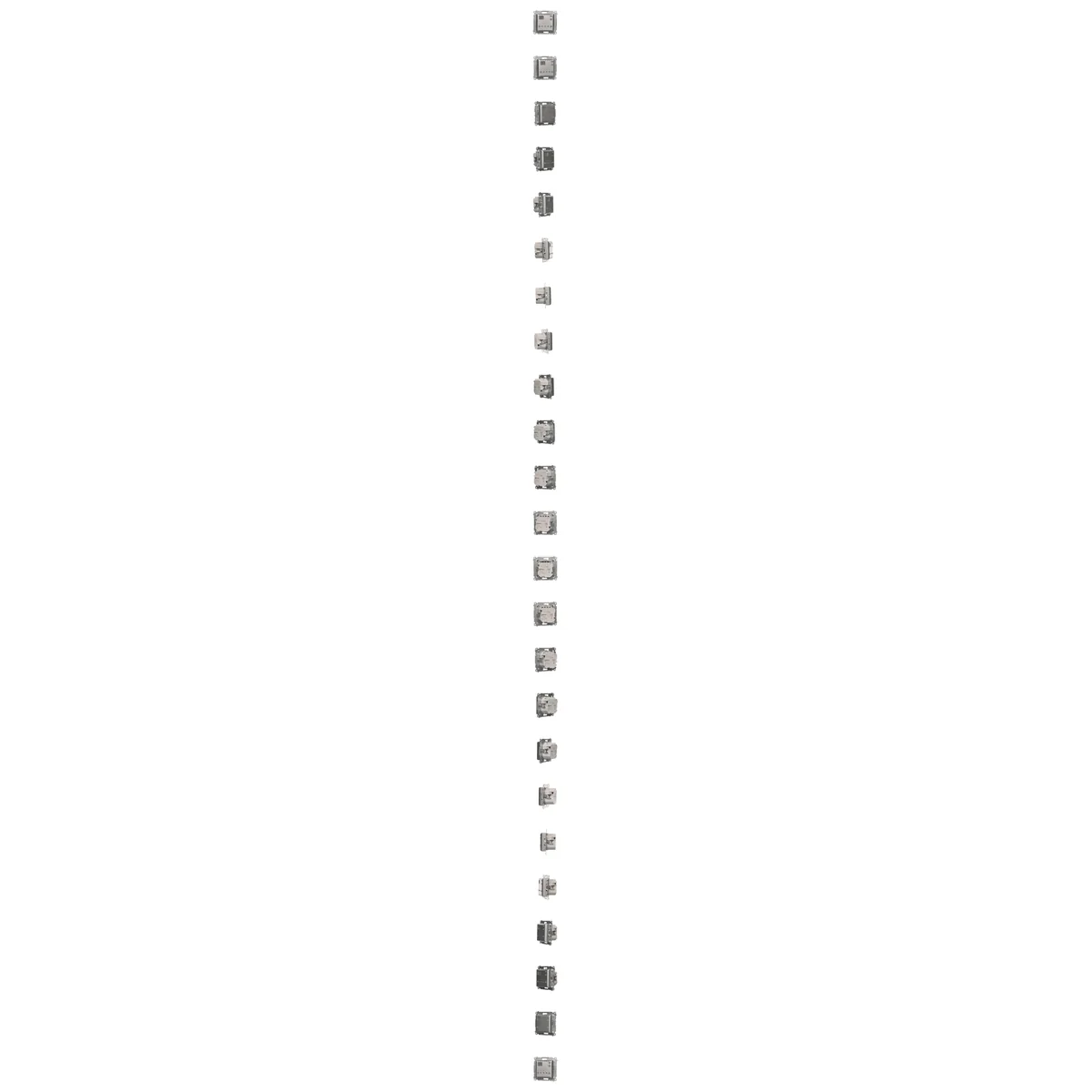 Regolatore di temperatura con display e sensore di temperatura interno della serie SIMON 54, argento opaco, metallizzato. Era fatto di plastica. La tensione nominale è 230V. Fissaggio con artigli o viti. Con terminali a vite.
