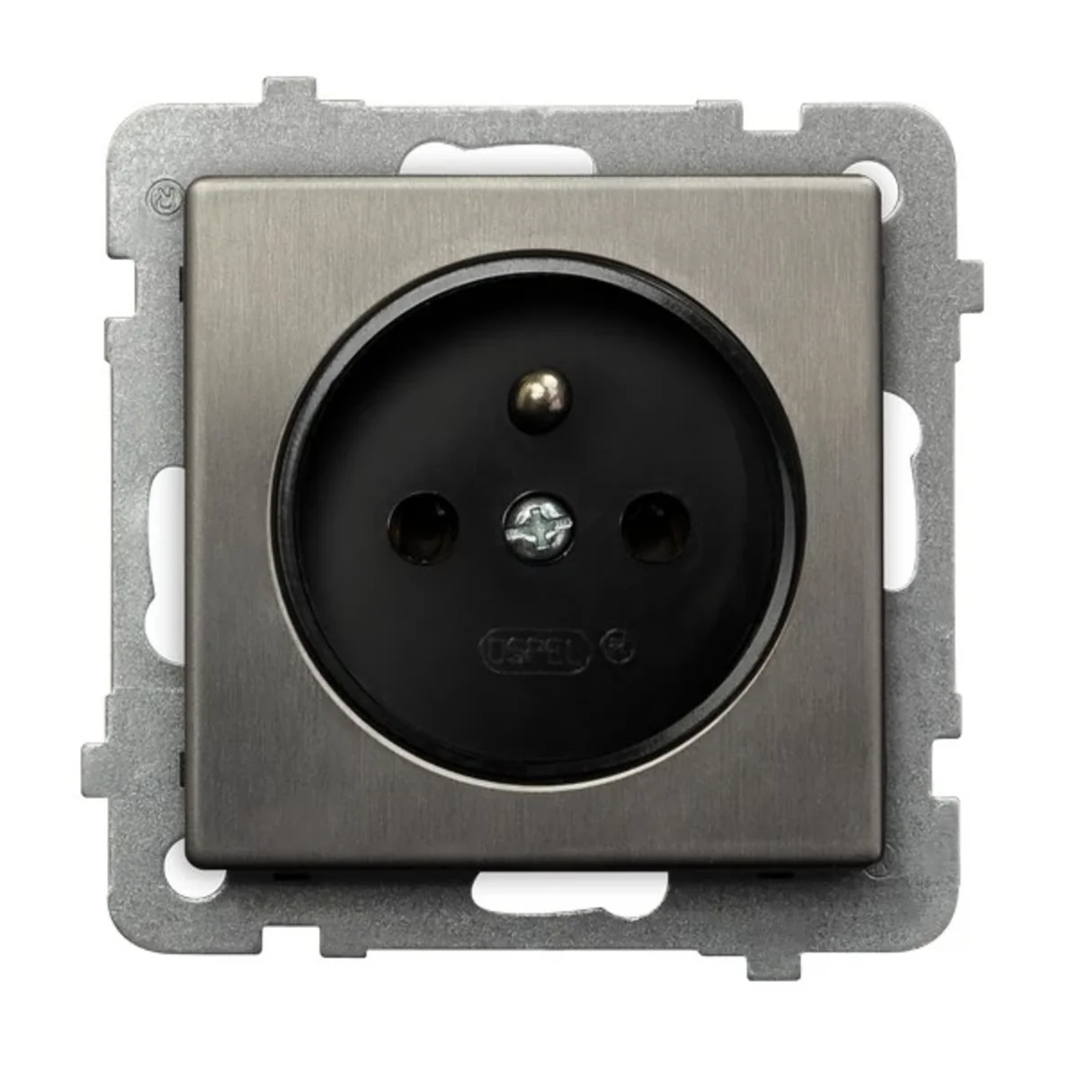 Presa elettrica della serie Sonata Stal Inox, del produttore Ospel. Il numero di catalogo del prodotto è GP-1RMZ/M/37.