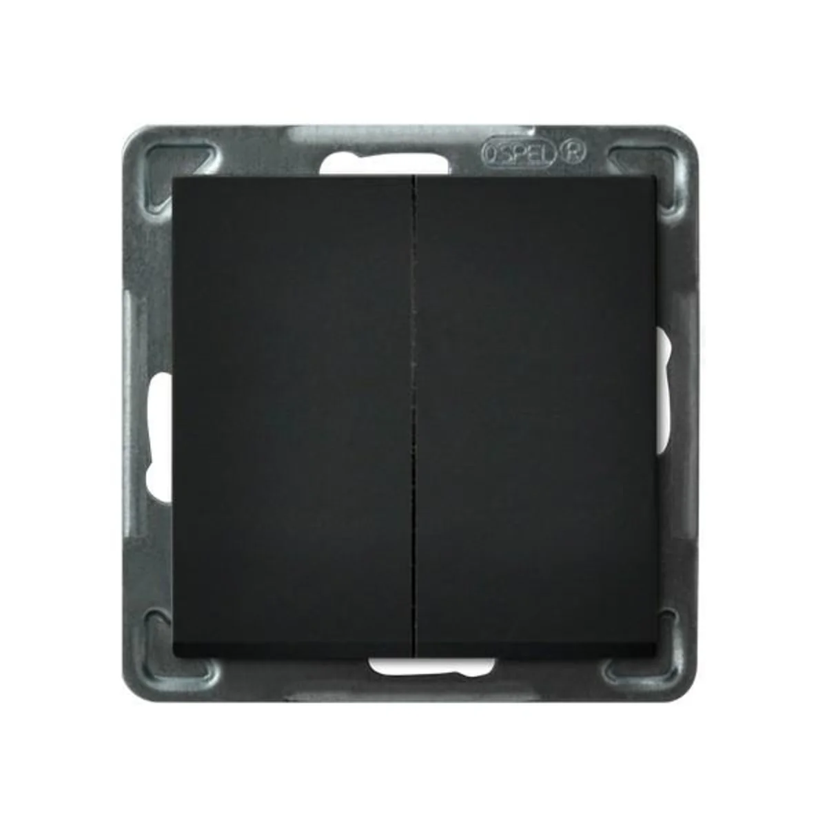 Doppio interruttore normalmente apertodella serieSonata, del produttoreOspel. Il numero di catalogo del prodotto è ŁP- 17R/m/33. In nero metallizzato.