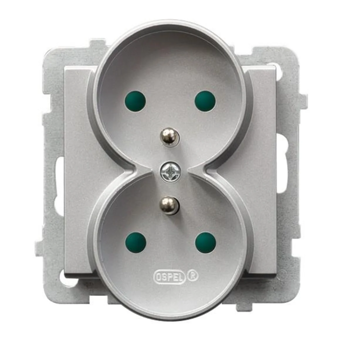 Doppia presa elettrica, senza messa a terra, da dotare di telaio, con serrande passacorrente.