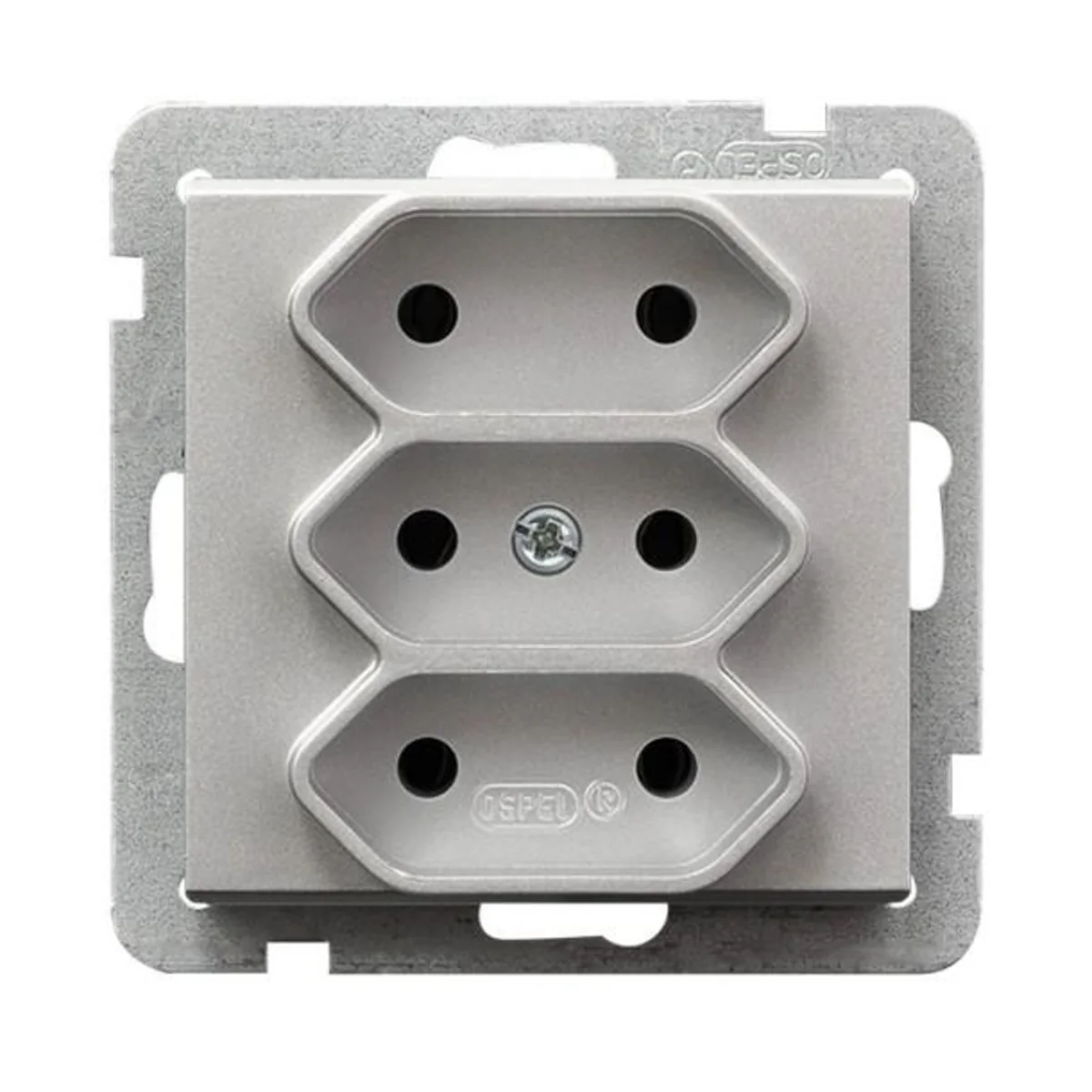 Presa elettricaper tre spine piatte. Da corredare con cornice.