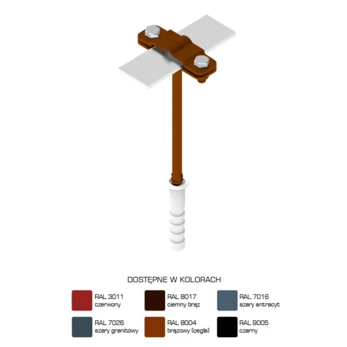 Un supporto per il montaggio di un cavo piatto (ferro a cerchio) con una spina di espansione inclusa. Montaggio a parete o su fondazione. Il supporto viene utilizzato anche per montare un cavo rotondo.