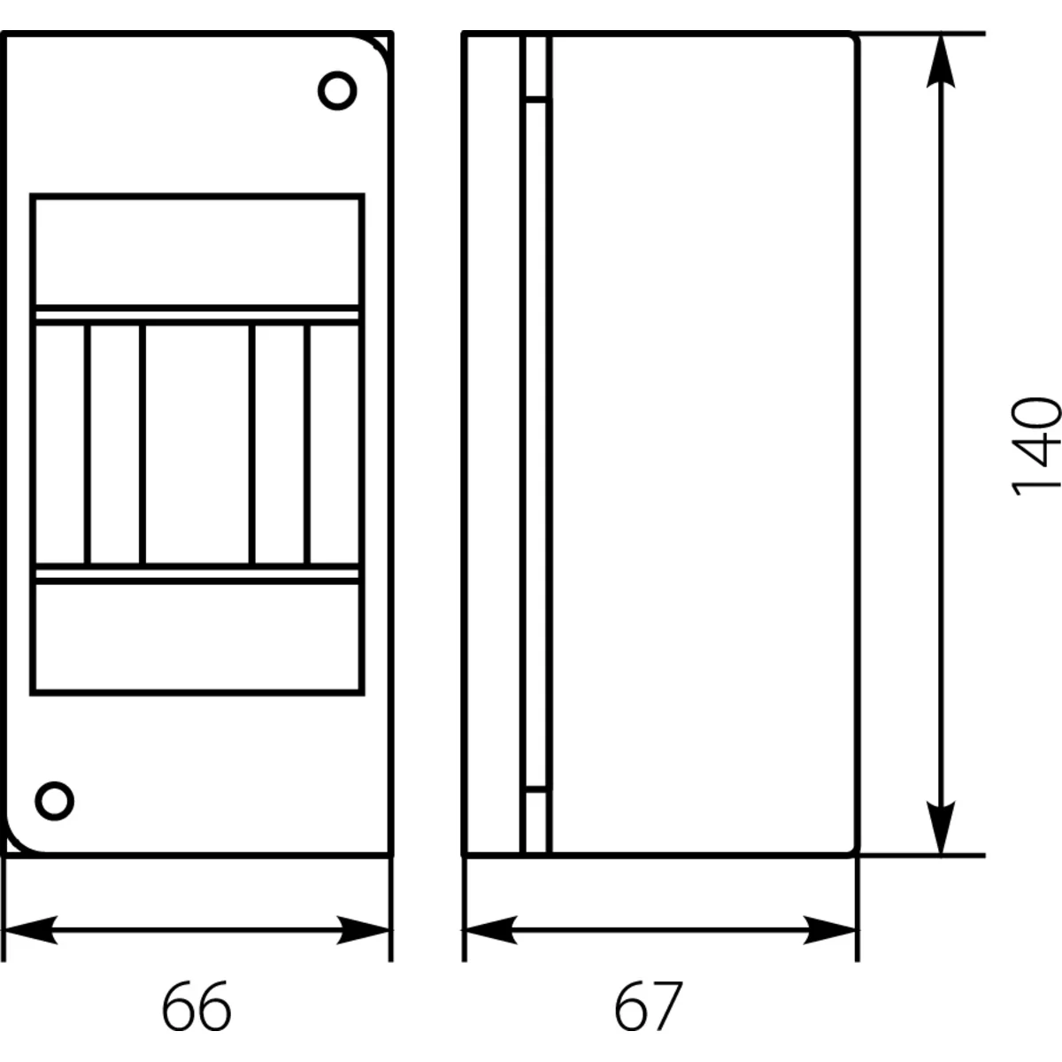 I quadri sono realizzati in plastica di alta qualità. Sono adatti per uso interno. I quadri hanno l'involucro di scatola chiusa e sono idonei alla piombatura. Le parti laterali dell'involucro sono dotate di rilievi per un facile inserimento di cavi o tubi di installazione.In conformità alle norme applicabili, i quadri devono essere posizionati su pareti ignifughe da personale adeguatamente qualificato.