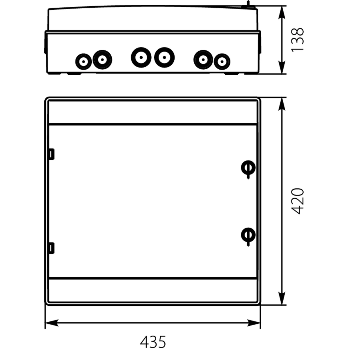 • Modelli da 12 moduli e superiori dotati di indebolimento nelle pareti per ingressi cavi e tubi di installazione,