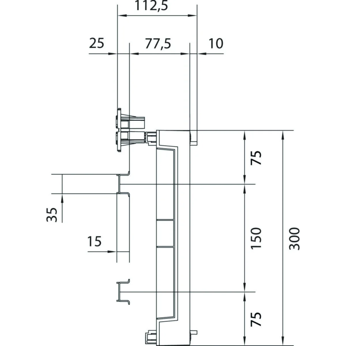 Set con copertura totale, con guide di supporto orizzontali TS35, distanza 150 mm per morsetti di serie, della serie univers N HC, ovvero il sistema di installazione interna.