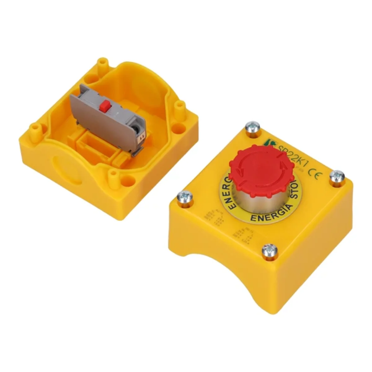 Kaseta z przyciskiem bezpieczeństwa przez obrót 1 styk rozwierny IP65 żółta 1x dławnica M20 SP22K1\05-1