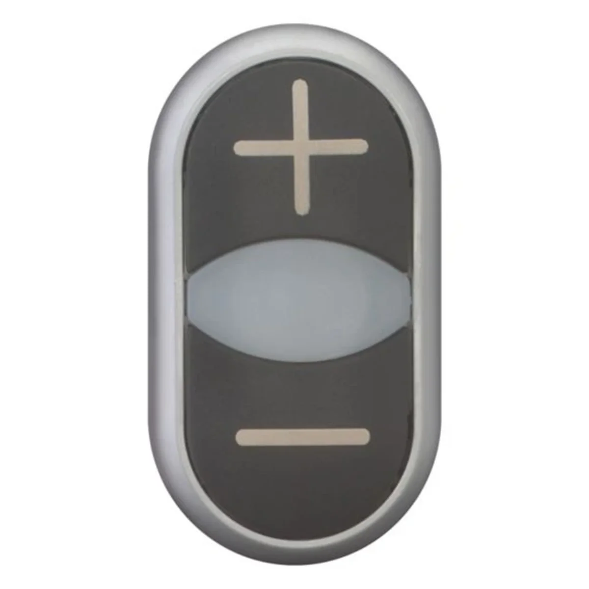 Napęd przycisków podwójnych z samopowrotem, czarny z opisem +, -