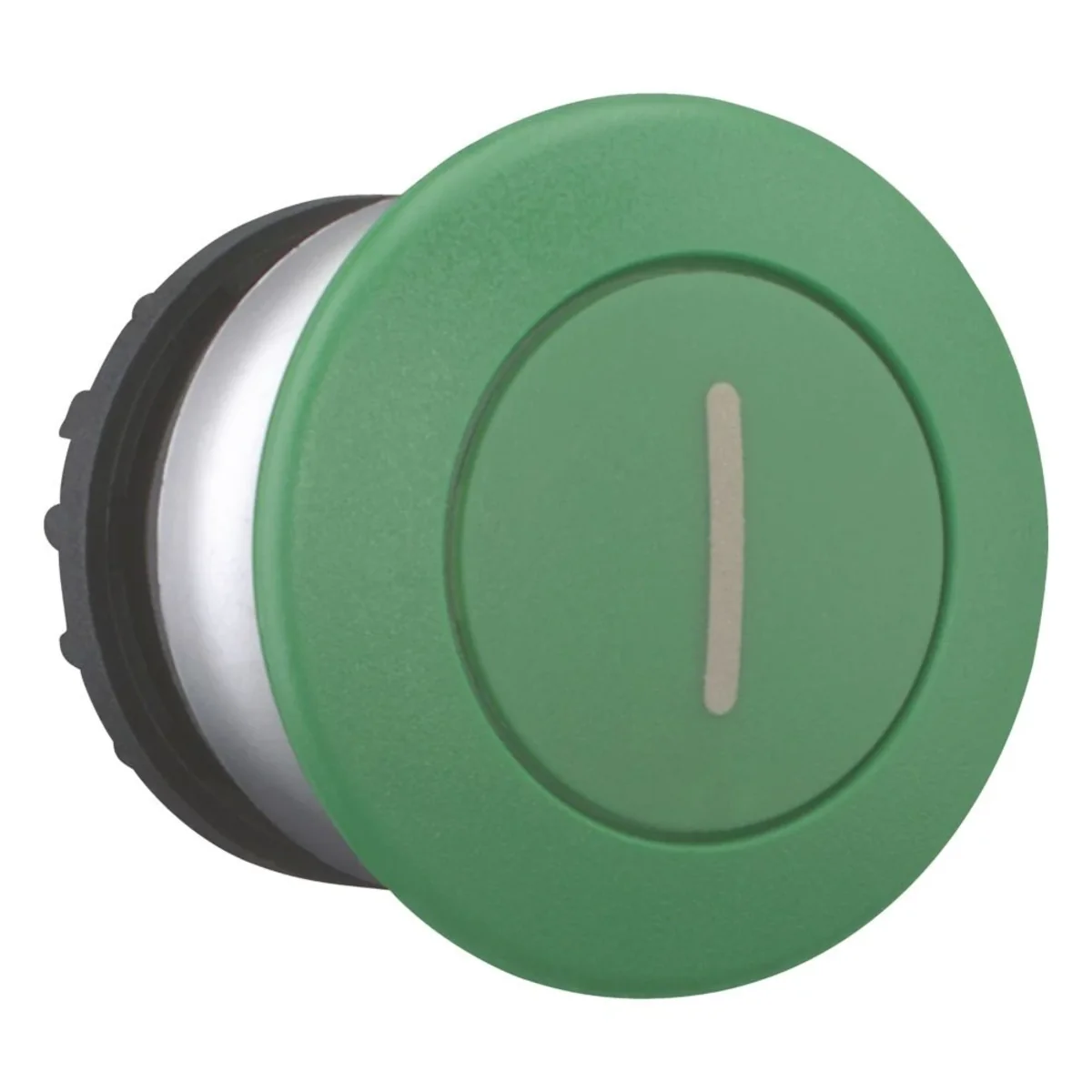 Przycisk grzybkowy zielony, z opisem I, z samopowrotem