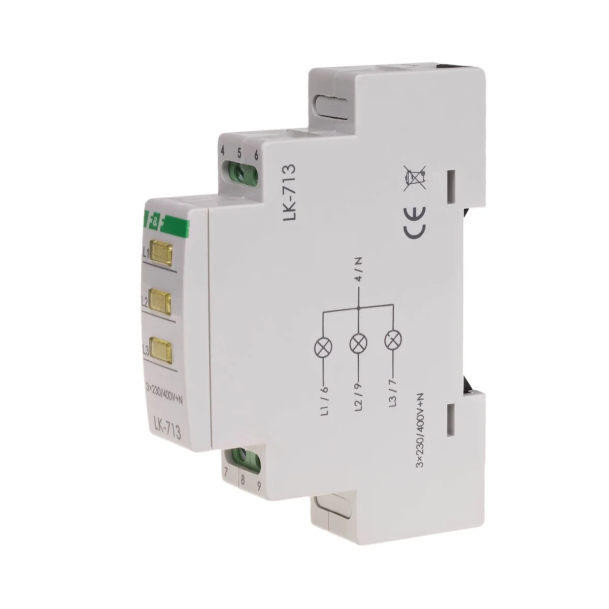 Lampka sygnalizacyjna LK-713 służy do optycznej sygnalizacji obecności napięcia w poszczególnych fazach sieci trójfazowej. Obecność napięcia w fazie sygnalizowana jest świeceniem odpowiedniej LED włączonej w obwód tej fazy.